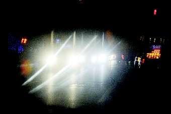 一些夜车滥用远光灯,晃得别人什么也看不清。本报记者王媛摄