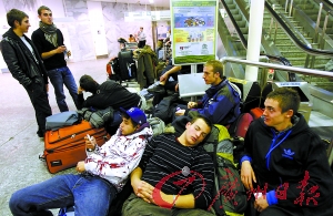 探雪18日,旅客滞留在匈牙利布达佩斯国际机场。