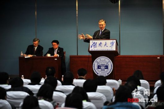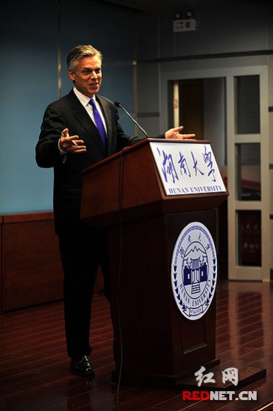 2月10日,美国驻华大使洪博培与湖南大学学生见面并发表演讲