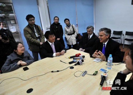 东方网2月11日消息:因最近媒体报道“即将辞职”而倍受关注的美国驻华大使洪博培,从昨晚至今天傍晚,在湖南长沙做短暂访问,了解湖南经济、教育、文化等社会发展状况。
