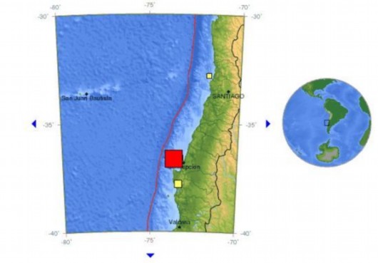 根据美国地质勘探局的报告,此次地震震中位于智利康塞普西翁以北45公里处,震源深度28公里。