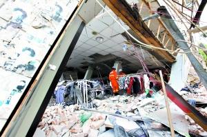 盈江天缘超市倒塌,消防人员在搜救。 东方IC