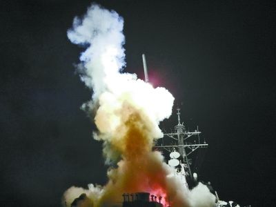 这张美国海军新闻部门提供的照片显示,美国海军“巴里”号导弹驱逐舰向利比亚发射“战斧”巡航导弹。美军参谋部主任威廉·戈特尼说,部署在地中海的美军和英军军舰与潜艇当天向利比亚发射了上百枚“战斧”巡航导弹,袭击了利比亚的20多处防空设施。