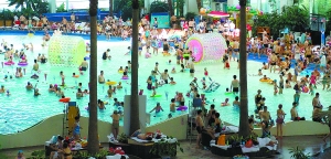 在昌平一家水上游乐园,众多游客在此享受着一片清凉。 庞铮铮