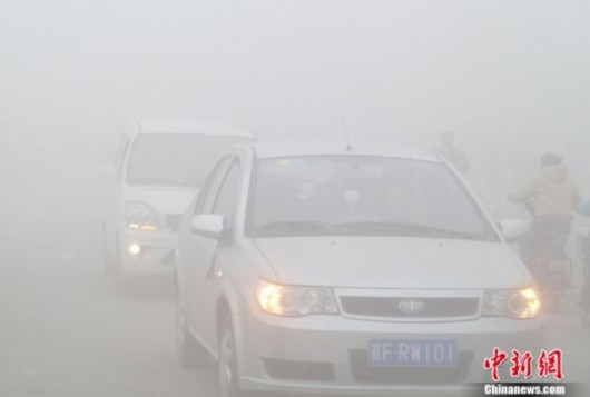 10月22日,在京港澳高速保定口车辆在浓雾中谨慎前行。自20日以来该省连续遭大雾袭击,当日唐山、秦皇岛、廊坊、保定、沧州西部、衡水西部、石家庄、邢台东部、邯郸东部等地区继续出现大雾天气,部分地区能见度小于50米。中新社发 吕子豪 摄