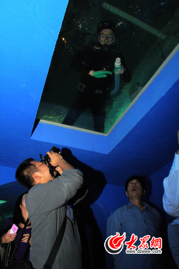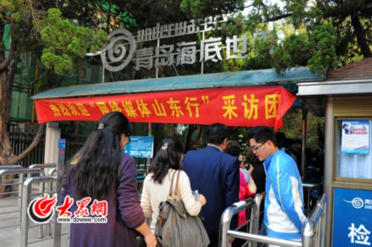 东方网10月22日消息:“没看过海底世界,别说您到过青岛。”如今, 青岛海底世界已经成为青岛乃至中国最具代表性的海洋旅游文化景区。今天下午,“文化强省看山东——第七届中国网媒体山东行”大型采访团的记者们就来到这里,开始了梦幻神奇的蓝色海洋之旅。世界上最大的单体亚克力圆柱展缸、世界上馆藏最为丰富的海洋生物标本馆以及国内首家采用180度常规视窗、254度大视窗和360度圆柱视窗等多种形式相结合的海底隧道等,都深深吸引了采访团的记者们,大家赞叹不已。