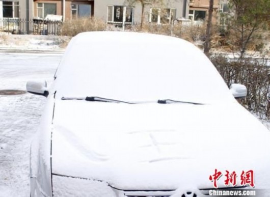 露天停放的车辆上面,都积了厚厚一层雪。 李鸿劼 摄