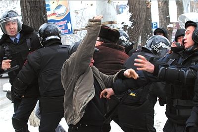 17日,在哈萨克斯坦阿拉木图,警方与示威者发生冲突。当天,反对派在阿拉木图集会,要求政府就扎纳奥津的冲突事件进行调查。图/人民图片
