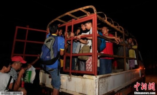 菲律宾南部连日来遭到热带风暴“天鹰”引发的大雨和洪水重创,受灾人口超过10万人。菲律宾红十字会18日上午透露,死亡人数已经升至447人。灾情最惨烈的卡加延德奥罗市和伊利甘市17日相继宣布进入“灾难状态”。图为受灾居民登上一列卡车前往疏散中心。
