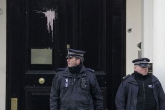 “抗议者”还在4日晚间强行闯入叙利亚驻英国大使馆。他们第二次试图闯入时,被英国警察用警棍击退。目前,英国警察已经逮捕了其中的12人。