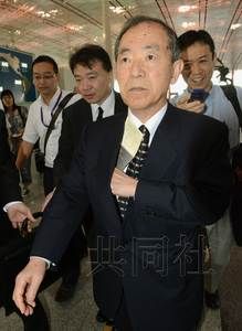 7月15日,日本驻华大使丹羽宇一郎从北京首都国际机场出发回国汇报情况。(共同社)
