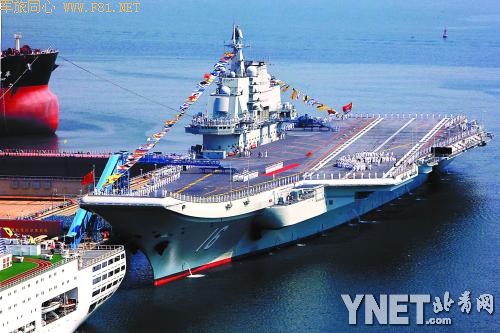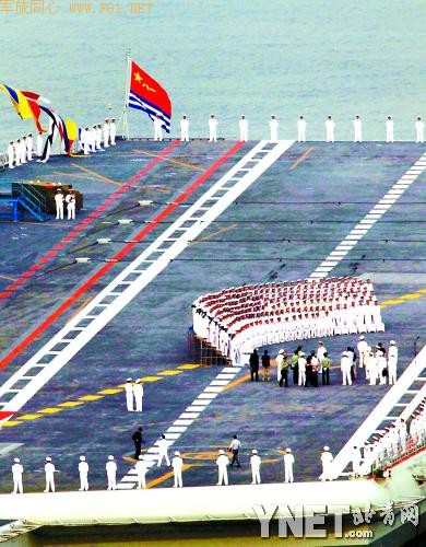 昨天,中国第一艘航母平台16号舰在大连举行了一个盛大仪式,在军乐队的国歌、军歌中,五星红旗、八一军旗、海军军旗先后升起。整个仪式过程简洁、庄严、威武。