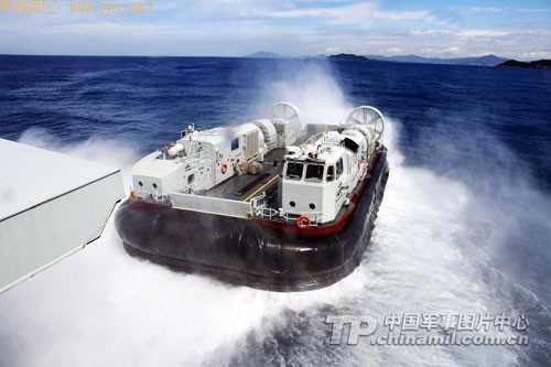 中国两栖船坞登陆舰出动新型气垫登陆艇(中国军网资料图)