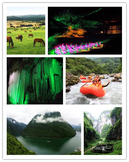 武隆县旅游资源丰富多异,概括起来就是“一洞一江一山一桥一缝”,一洞即“天下第一洞”芙蓉洞、一江就是水上喀斯特原始森林芙蓉江、山就是南国牧原仙女山、桥就是世界最大的天生桥群天生三硚、缝就是地质奇观龙水峡地缝。此外,为丰富旅游产品类型,武隆县联合张艺谋、王潮歌、樊跃所共同打造的大型实景演出“印象武隆”每晚在仙女镇桃源大峡谷震撼上演,其结合完美的灯光音响为游客打造一台展现巴渝民俗文化的视听盛宴。国庆期间印象武隆演出时间:http://www.wlkst.com/wlxw/3602.jhtml。