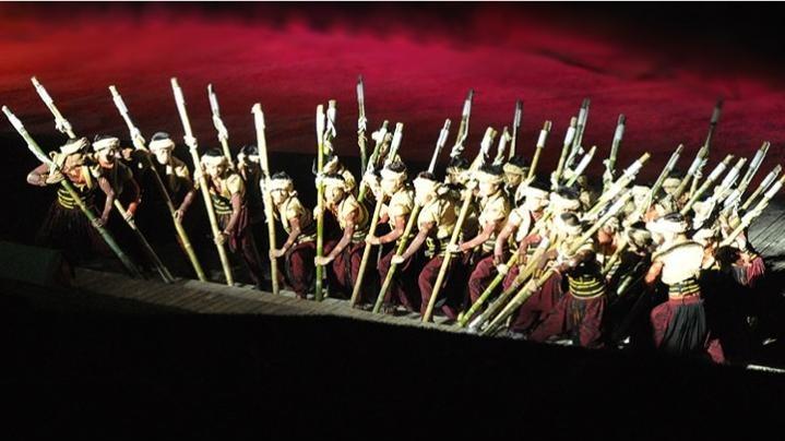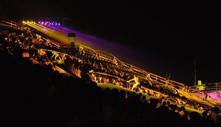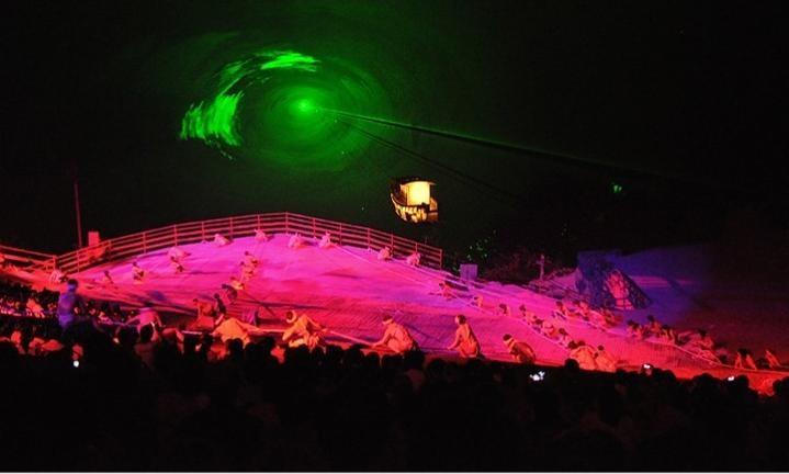 震撼力的节目应该是那个纤夫拉纤的节目了“车车、闪闪、绳子、和短裤”就是纤夫拉纤时身上所有的物件。拉纤是不能穿衣服的,江上情况千变万化,江水一会儿平一会儿凶,有时候一个大浪打过来,湿了衣服,把身子裹得紧紧地,用不上力,还会被江水卷进去,那就没命了。”老汉平实的讲说充满了画面感,我仿佛看见了老汉带着一群人,和愤怒的江水搏斗,江面上激荡着雄浑有力的川江号子。而现场的舞蹈则把这一情景表现得淋漓尽致。