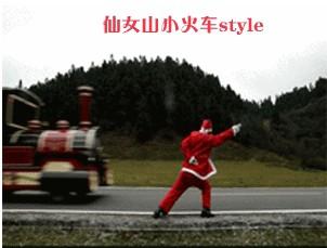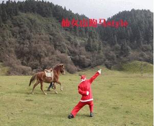 图片中,可爱的网友身着圣诞红装,面对骏马、仙女山特色小火车及卡丁车,效仿航母style中的经典姿势,给大家带来不一样的“走你”。