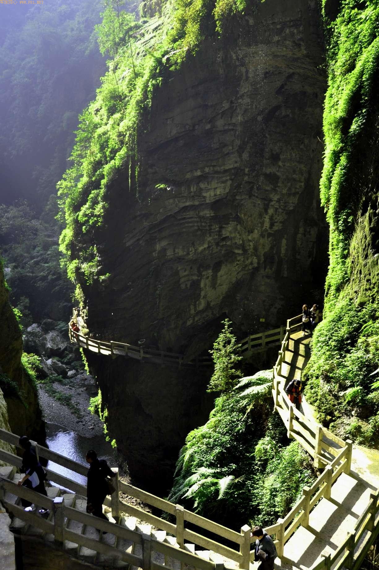 中国南方喀斯特世界自然遗产核心景区,中国国家地质公园。经几千万年前造山运动而形成,属典型喀斯特地貌景观。地缝形如其名,就想地球裂开一道深邃的缝隙,谷底最窄处只一米之遥,最宽处也不足十米,缝口与谷底之间高达350余米,谷底溪水孱孱,清澈见底。峡谷两岸如刀劈斧削一般,即使正午时分,阳光也难达谷底,漫游其间,仿佛置身地球深处探幽,犹若在时空隧道中穿行。景区玲珑秀丽,风光优美,以峡深壁立、原始植被、飞瀑泉流、急流深潭为其特色,是一处很好的生态旅游和探险旅游风景区。