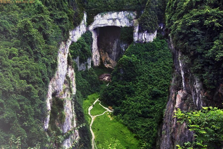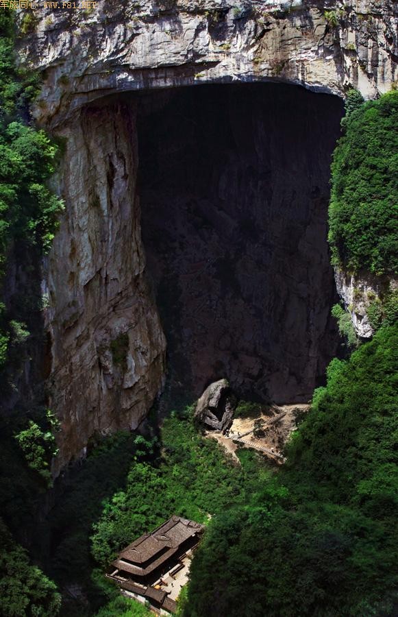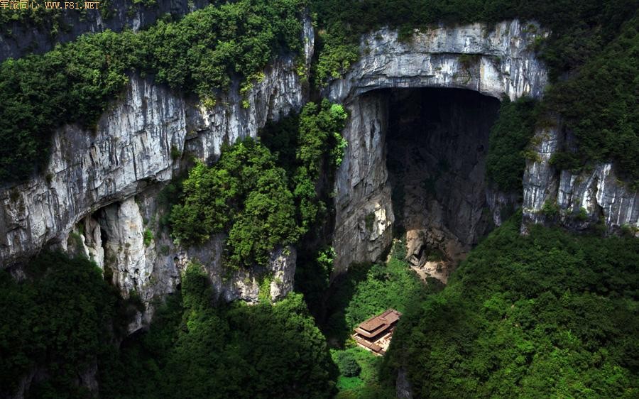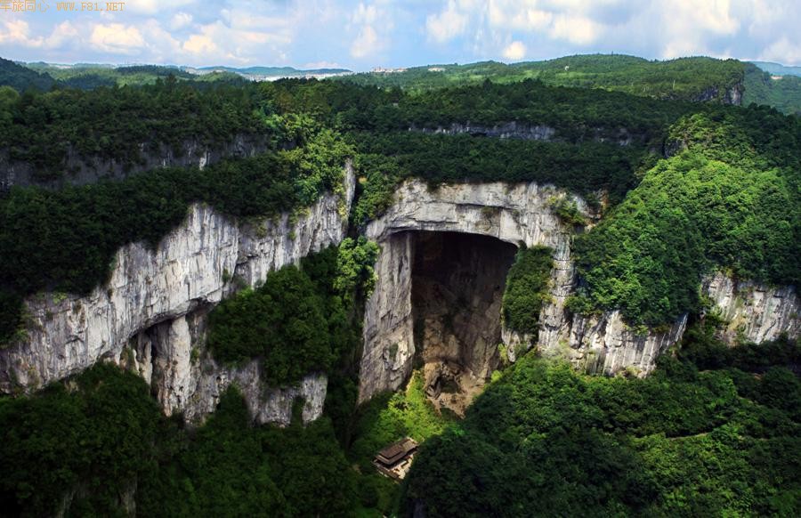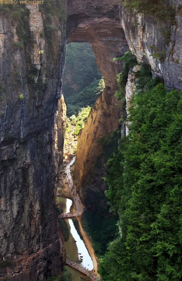 俯瞰天生三硚是非常壮观的,其山势之雄伟,峭壁之险峻,石桥之逶迤,喀斯特地貌参差裸露的灰白色碳酸盐岩石,当地特有的茂盛的针叶阔叶混交林,葱茏的绿与沧桑的白犹如一幅巨型的青绿山水长卷,意趣隽永,耐人寻味。(摄影--王俊杰)