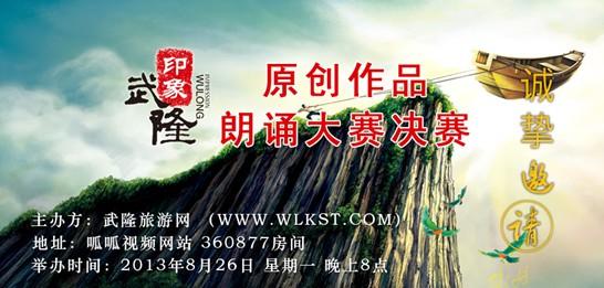 此次大赛是一场中国网络文化的盛宴,是对国家非物质文化遗产——川江号子的传承。正如大型山水实景演出《印象武隆》导演王潮歌所述:我们不为留存,不为纪念,为的是不断的血脉!是的,川江号子作为长江水路运输史上的文化瑰宝,在漫漫历史长河中,已经彻底消失,但是,川江纤夫们坚韧不拔、团结协作、顽强拼搏、乐观豁达的精神却不容我们忘却。也正是为了让川江的灵魂不再寂寞,让号子的精神得以永存,在2012年印象武隆网络文学征文大赛完满结束之后,2013年印象武隆原创作品朗诵大赛应运而生。