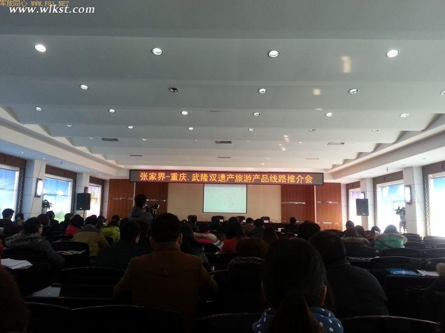 由张家界旅游局和重庆市武隆县人民政府联合举办的“张家界 重庆武隆联线游产品推介会”今日在张家界市旅游局会议室举行。张家界市旅游局局长丁云勇,重庆市武隆县委常委、武隆县宣传部部长马奇柯参加了本次会议并发表了致辞。武陵源景区、天门山景区、张家界大峡谷景区以及张家界的旅行社、旅行社协会、导游协会负责人和媒体记者也参加了本次会议。会上,丁局长强调要从诚信服务、质量监督、旅游产品设计三方面出发,推动双遗产联线游产品的长效发展。